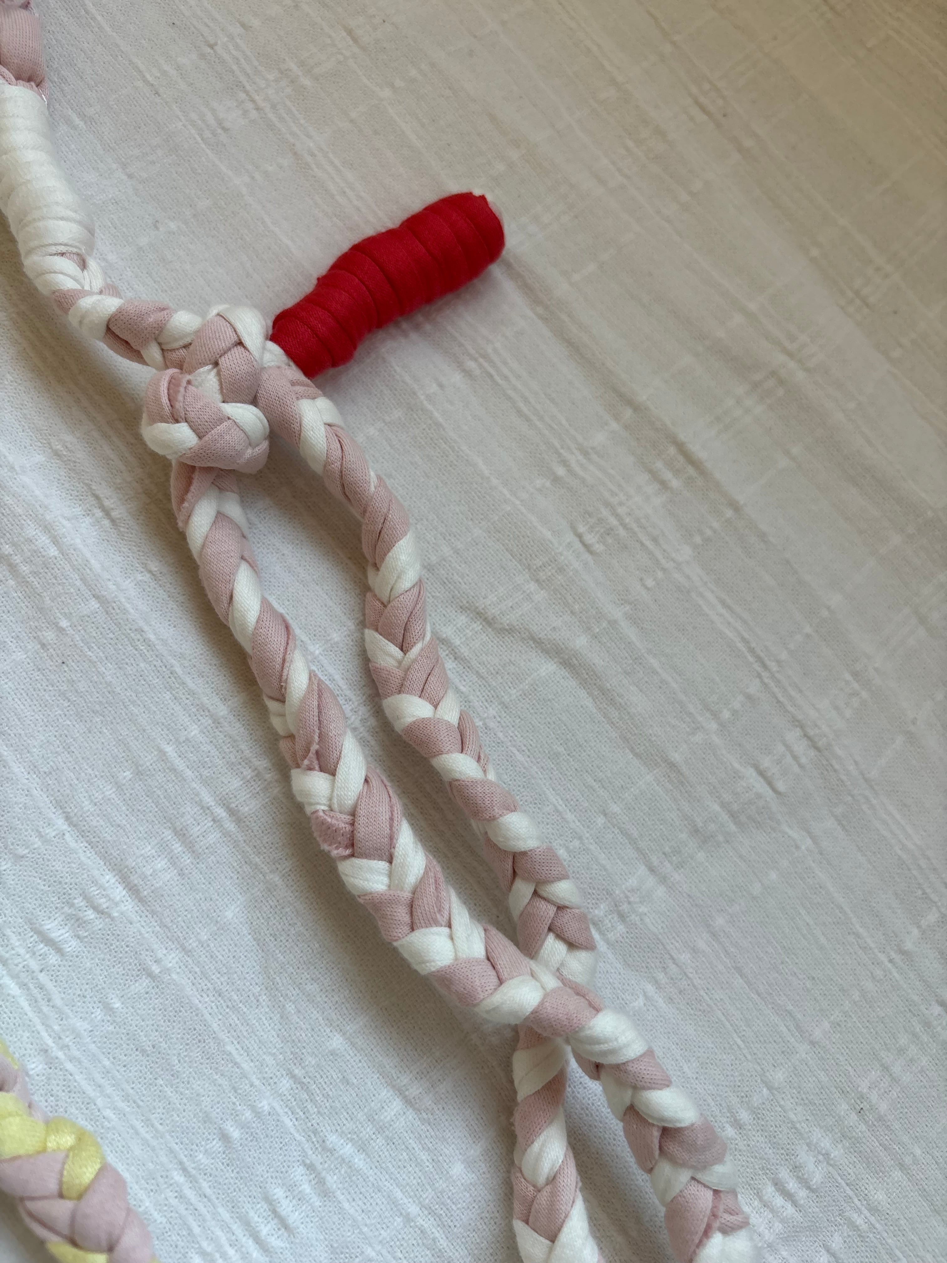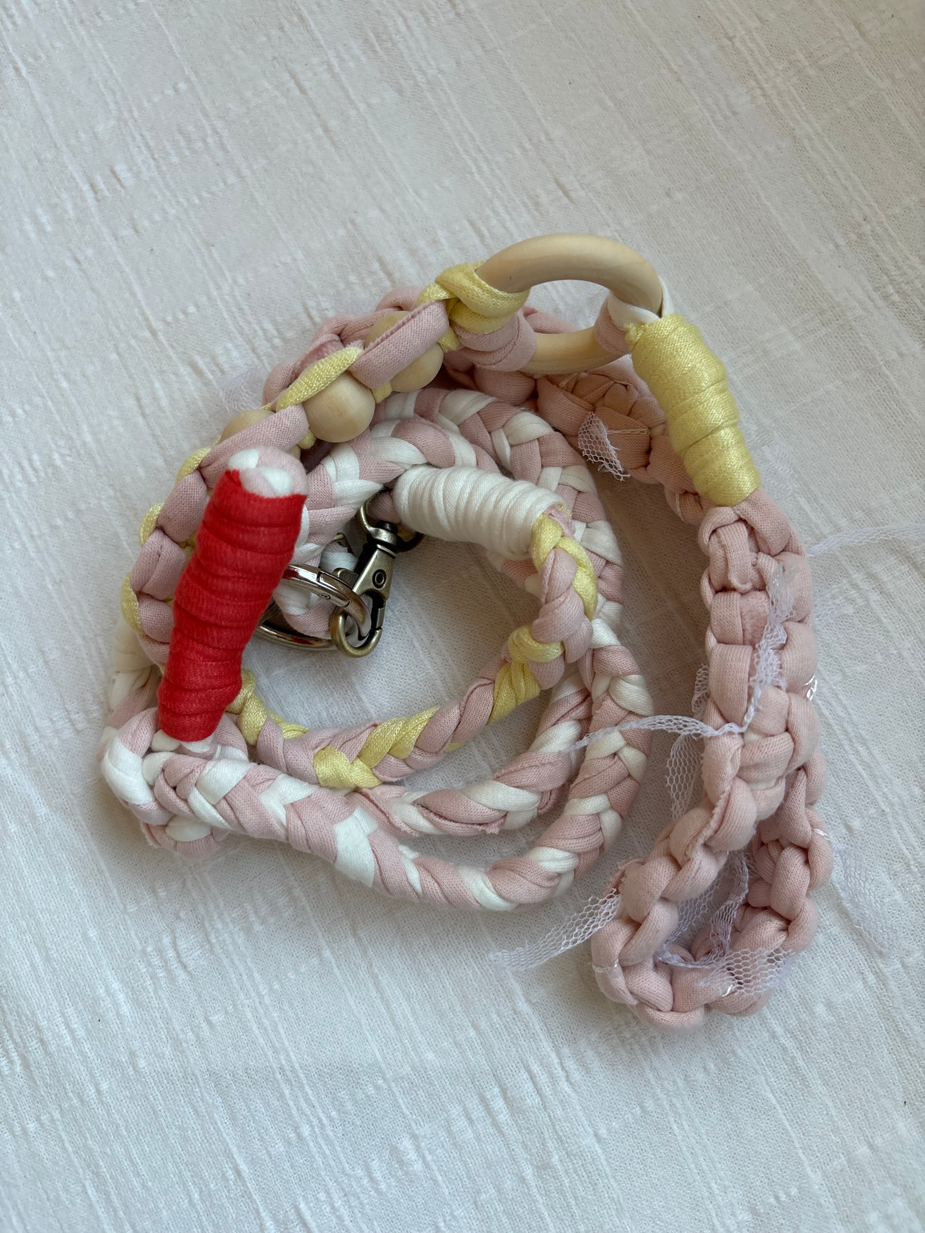 Tシャツヤーンを丁寧に編んで作りました。