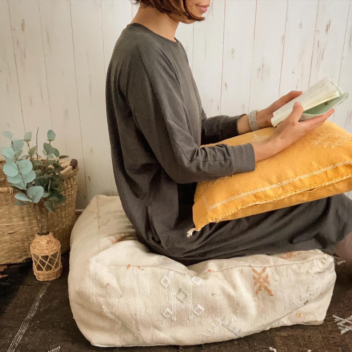 モロッコは日本と同じ床文化。プフはソファーや椅子代わりに使われており、オールマイティに活躍するお品です。
