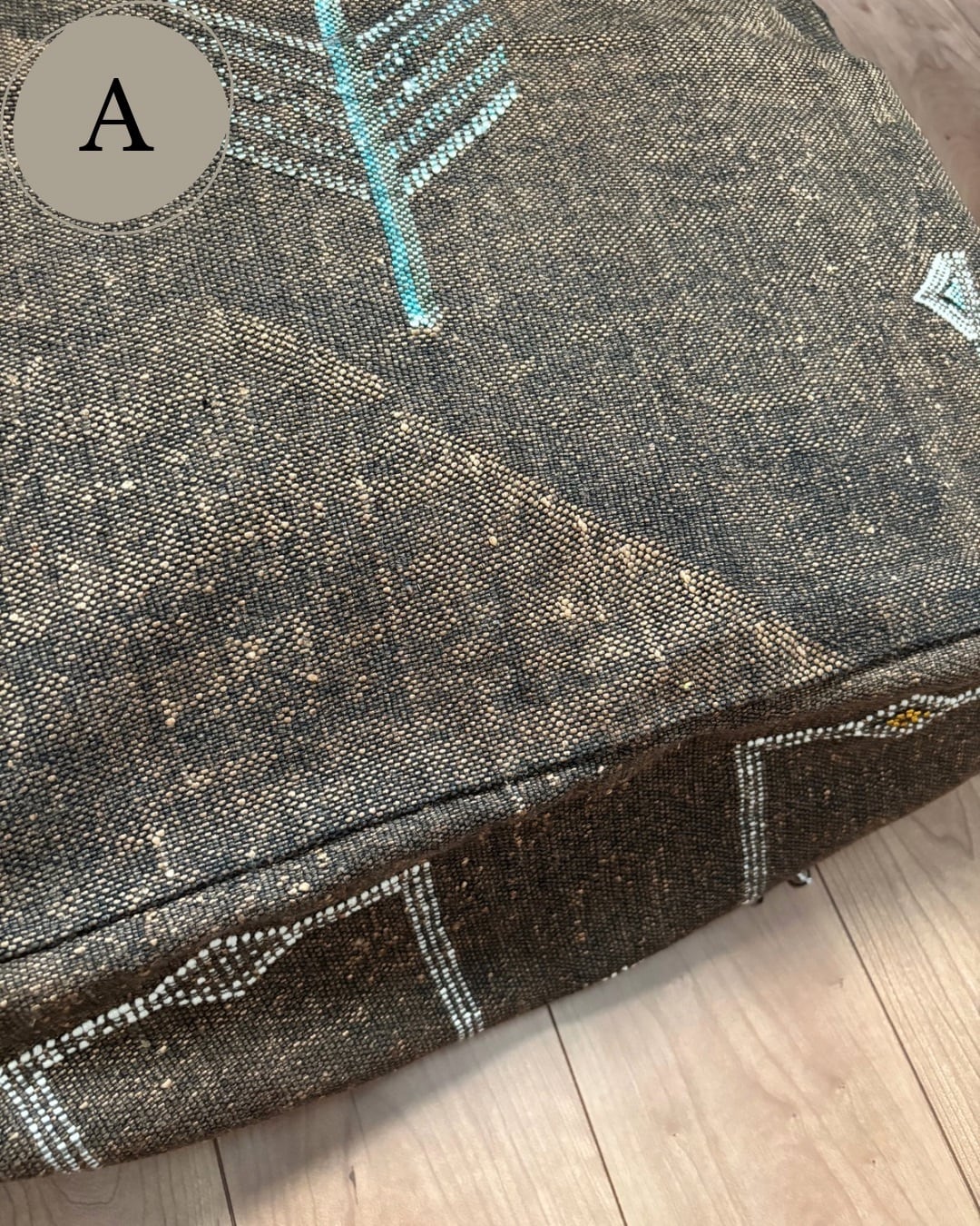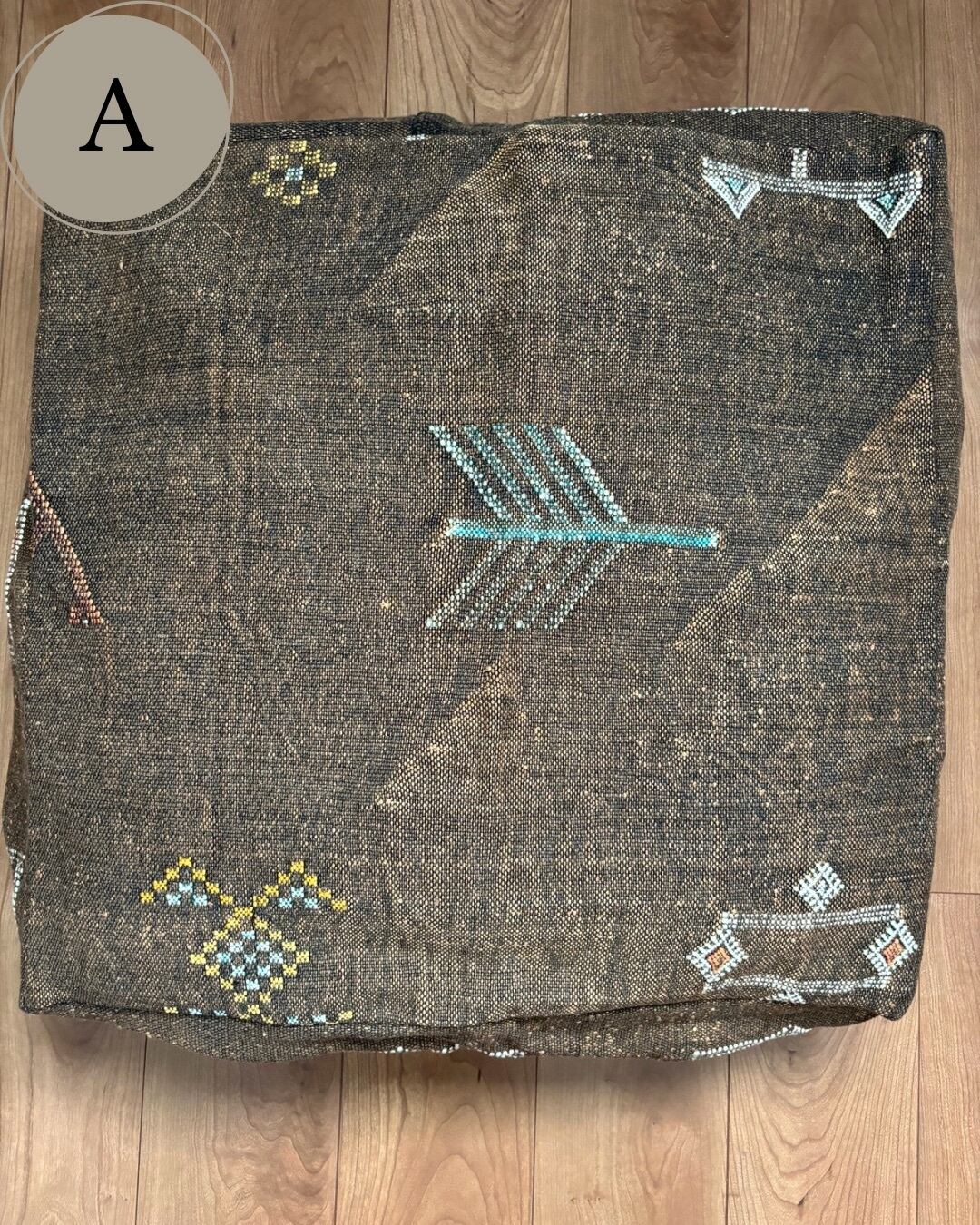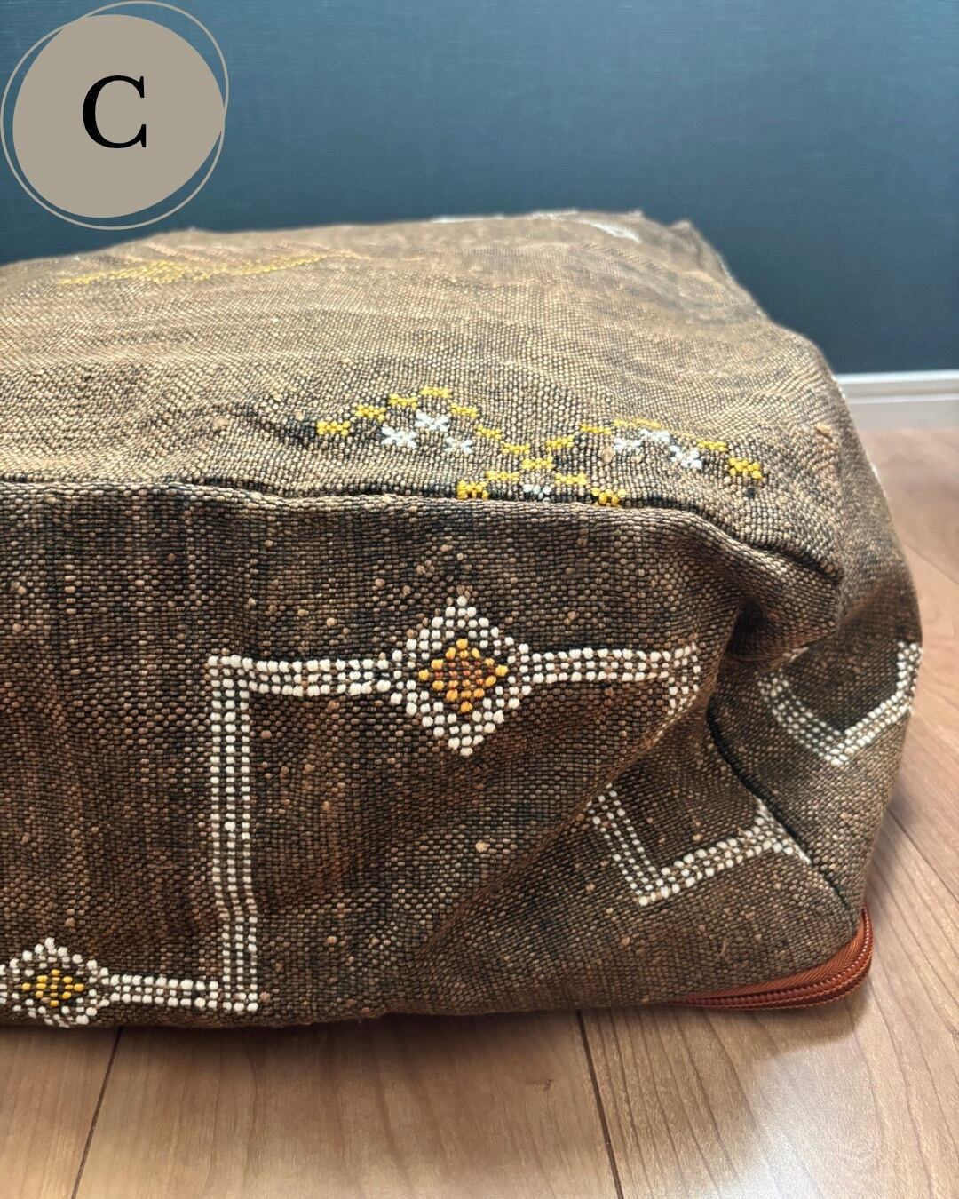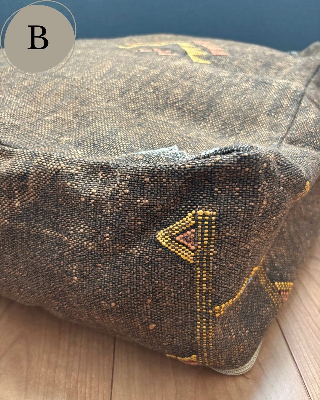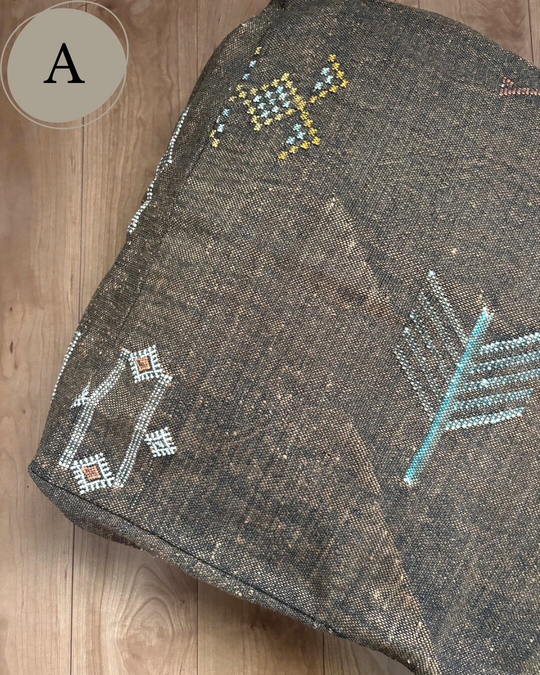 そして、ひとつひとつ手刺繍されたベルベルの伝統模様。模様の位置や色に図案などはなく、全て職人さんのインスピレーションで作られているので、全く同じものはない一点物となっております。